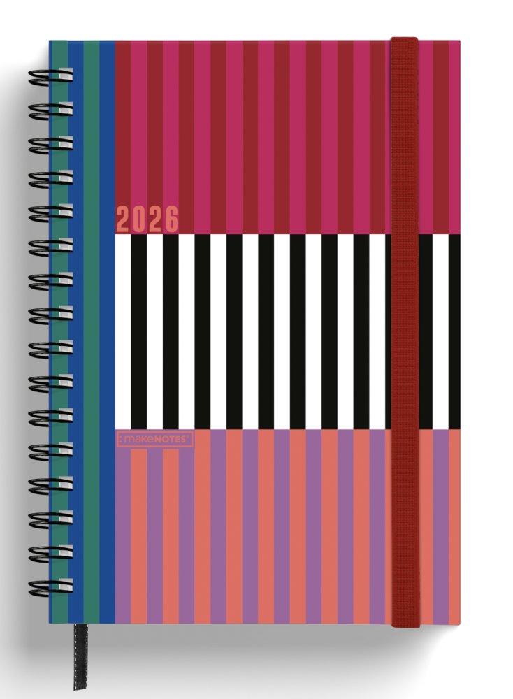 AGENDA SEMANAL A5 ESPIRAL DOBLE NEGRA VISIBLE 12 MESES LINES