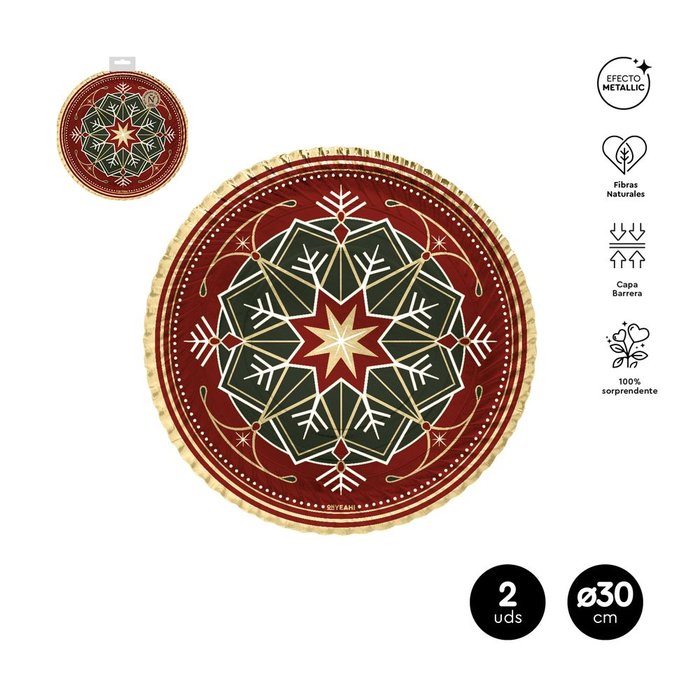 BANDEJA NAVIDAD ROJO VERDE 30CM 2U