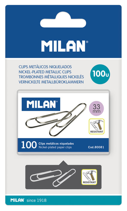 BLISTER 1 CAJA 100 CLIPS METALICOS NIQUELADOS 33MM