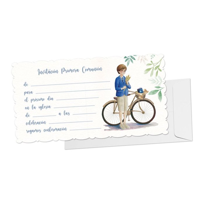 BLISTER 10 INVITACION + SOBRE COMUNION NI?O BICICLETA