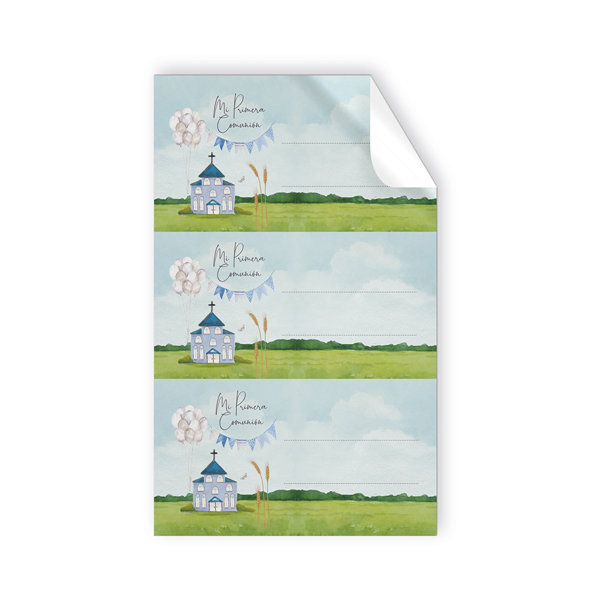 BLISTER 9 STICKERS COMUNION IGLESIA AZUL
