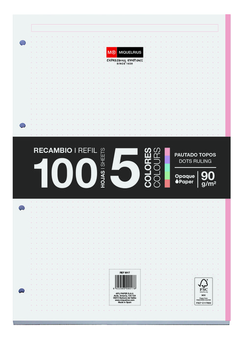BLOC RECAMBIO A4 PUNTOS 100H 5 COLORES MR SURTIDO PASTEL