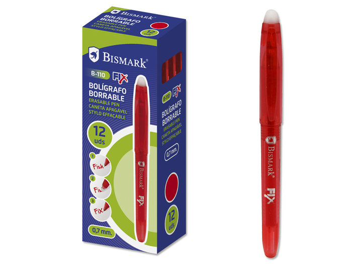 BOLIGRAFO BORRABLE CAPUCHON BISMARK ROJO 0,7MM