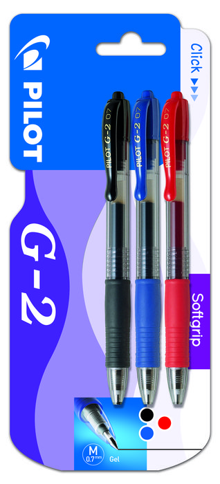 BOLIGRAFO PILOT G-2 BLISTER NEGRO, AZUL, ROJO