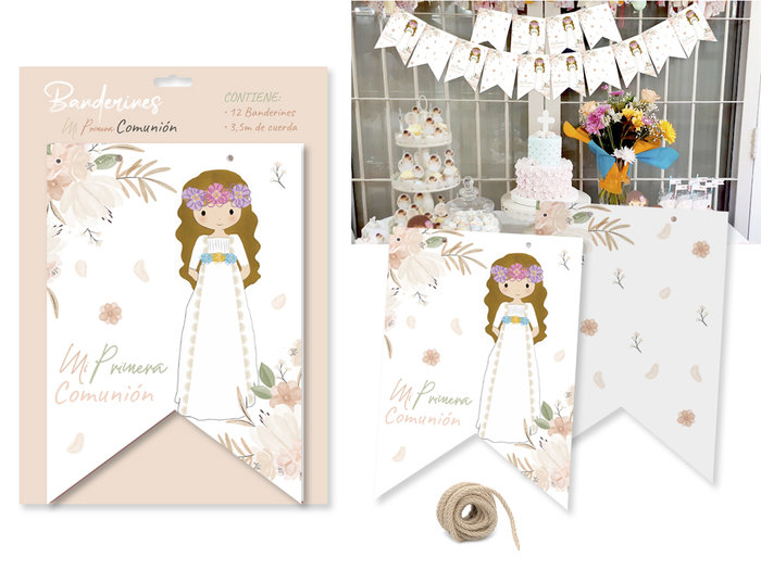 BOLSA CON 12 BANDERINES NI?A MI PRIMERA COMUNION