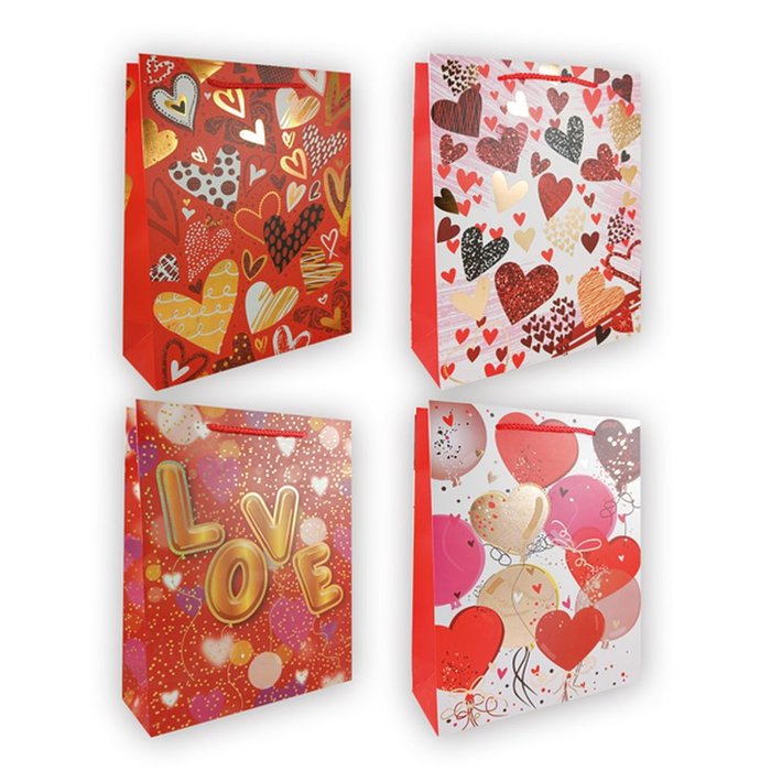 BOLSAS PAPEL 23X18X10CM PEQUE?A CORAZONES 12U SURTIDAS