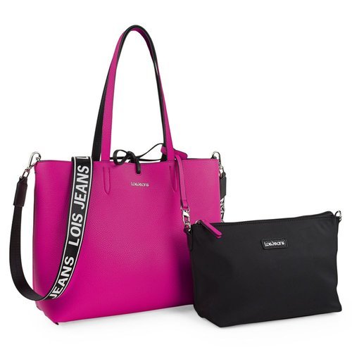 BOLSO SHOPPER REVERSIBLE OMEGA NEGRO-FUCSIA 13X40X27