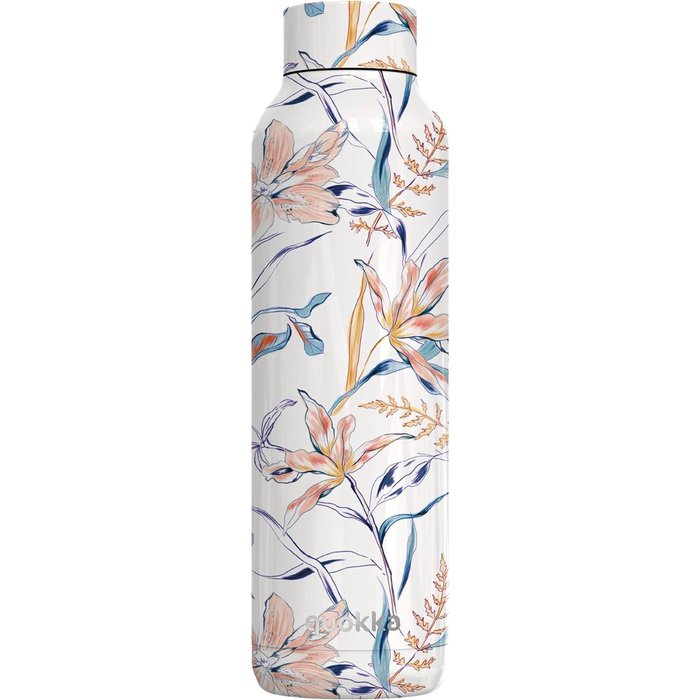BOTELLA TERMO ACERO INOXIDABLE 630 ML BLANCA FLORES QUOKKA