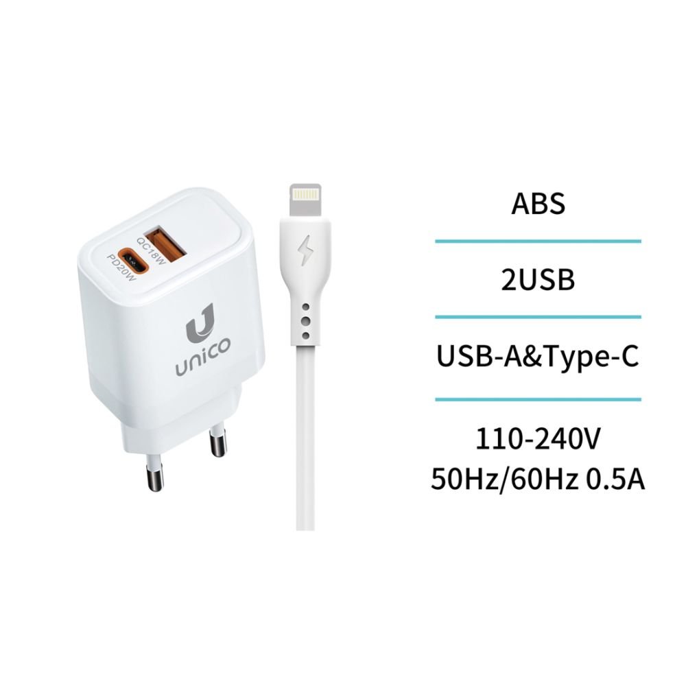 CARGADOR DUAL USB Y TIPO-C CON CABLE CARGA RAPIDA UNICO