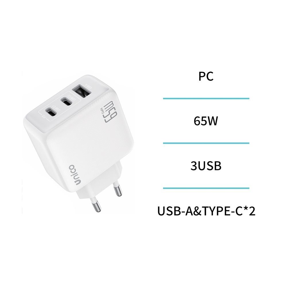 CARGADOR TRIPLE USB Y 2 TIPO-C 65W CARGA RAPIDA UNICO