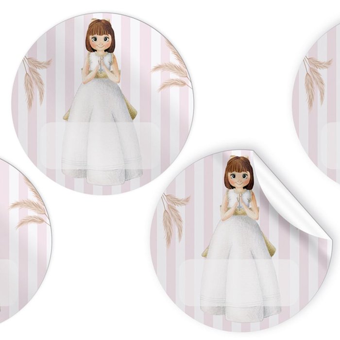 ETIQUETAS ADHESIVAS REDONDAS 4CM COMUNION NI?A PASTEL 96U