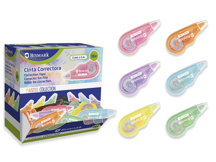 EXPOSITOR 48 CINTAS CORRECTORA MINI BISMARK PASTEL 5 METROS