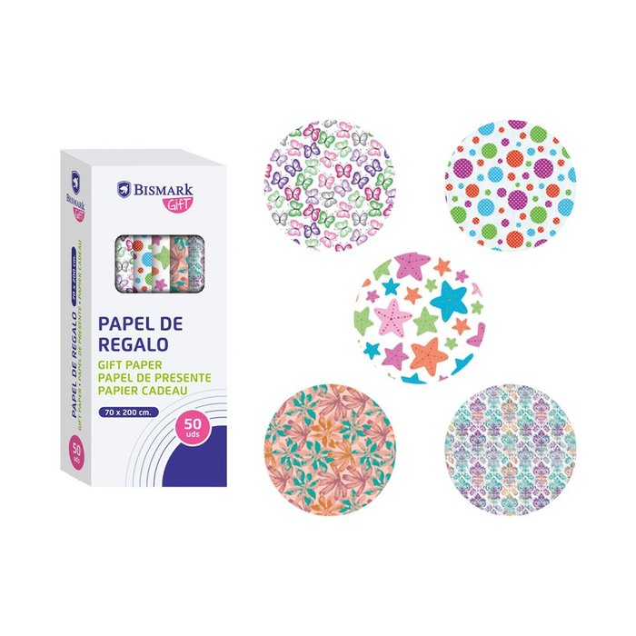 EXPOSITOR 50 ROLLO PAPEL DE REGALO TODO TIEMPO 70X200