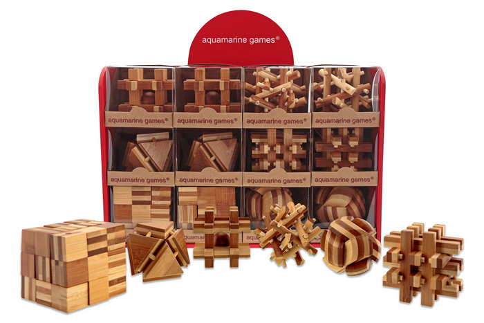 EXPOSITOR MADERA LACADA 12 JUEGOS BAMBOO PUZZLE