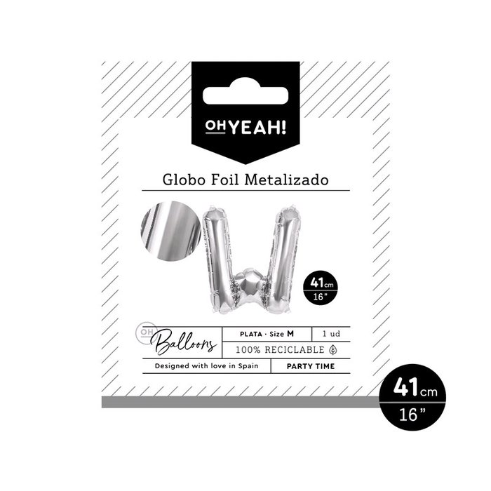 GLOBO POLIAMIDA LETRA W 41CM-16 PLATA METALIZADO 1 UD