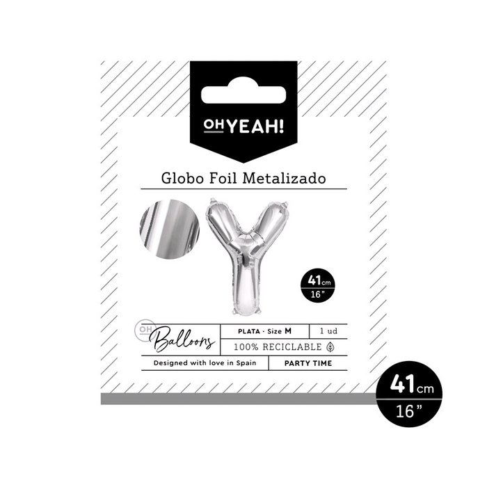 GLOBO POLIAMIDA LETRA Y 41CM-16 PLATA METALIZADO 1 UD