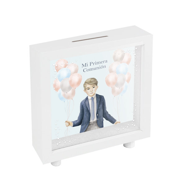HUCHA BLANCA COMUNION NI?O GLOBOS