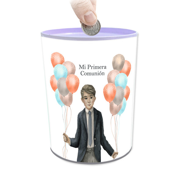 HUCHA METALICA COMUNION NI?O GLOBOS
