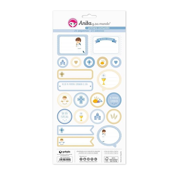 LAMINAS PEGATINAS COMUNION EL 18-19 PACK 5 UNIDADES