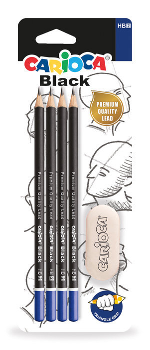 LAPIZ GRAFITO CARIOCA HB BLISTER 4 UDS + GOMA