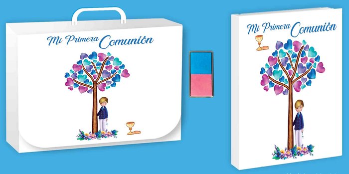 LIBRO COMUNION HUELLAS NI?O + MALETIN
