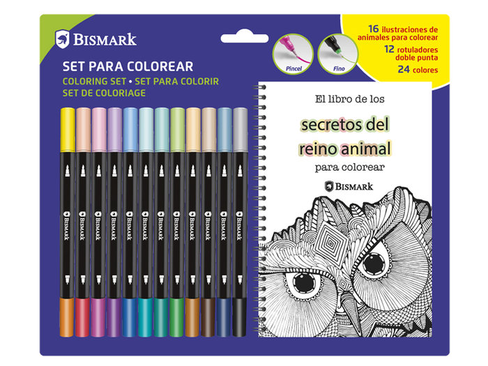 LIBRO MANDALAS ANIMALES + 12 ROTULADORES DOBLES