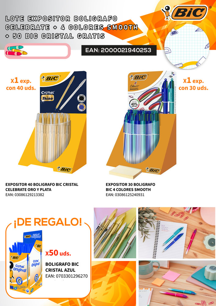 LOTE EXPOSITOR BOLIGRAFO CELEBRATE + 4 COLORES SMOOTH + 50