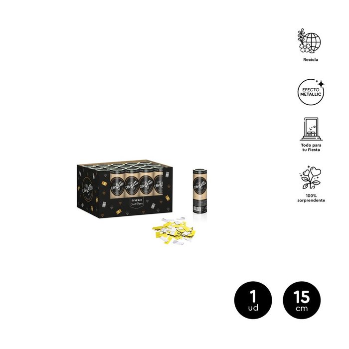 MINI CA?ON CONFETI ORO PLATA METALIZ, 15CM