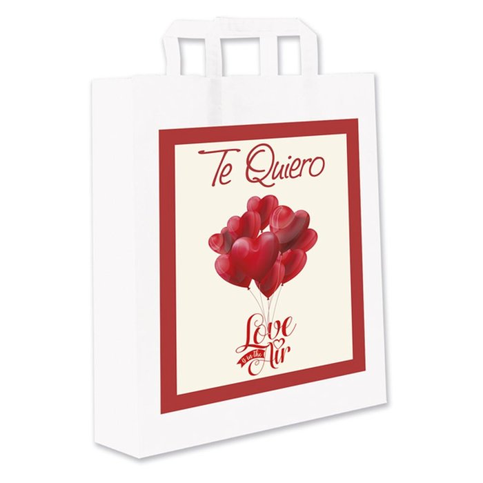 PAQUETE 12 BOLSAS 37X32X12CM GRANDE BLANCA GLOBOS TE QUIERO