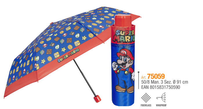 PARAGUAS INFANTIL PLEGABLE 50/8 MANUAL SUPER MARIO