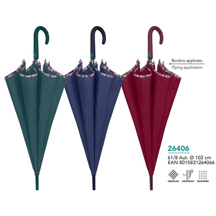 PARAGUAS MUJER 61/8 AUTOMATICO LISO CON RIBETE SURTIDO
