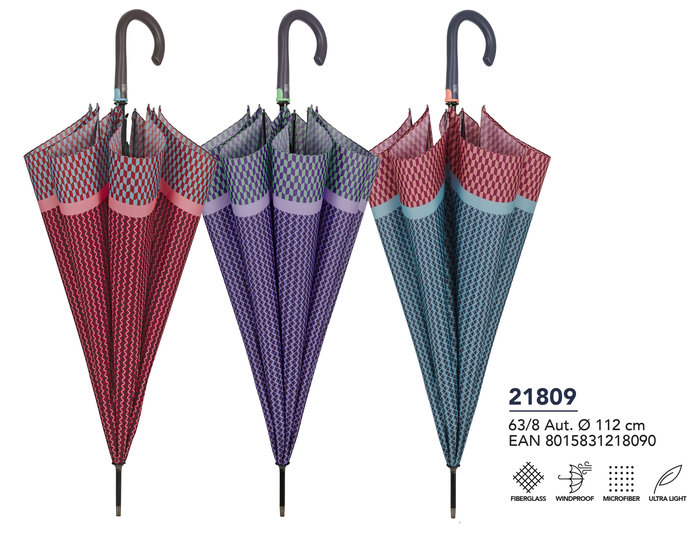 PARAGUAS MUJER 63/8 AUT, ESTAMPADO GEOMETRICA LIGERA