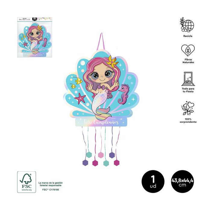 PI?ATA FELIZ CUMPLEA?OS SIRENA 43,8 X 44,4 CM CARTON