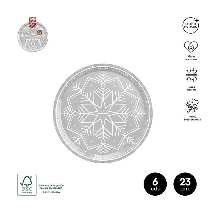 PLATO NAVIDAD PLATA 23CM CARTON 6U