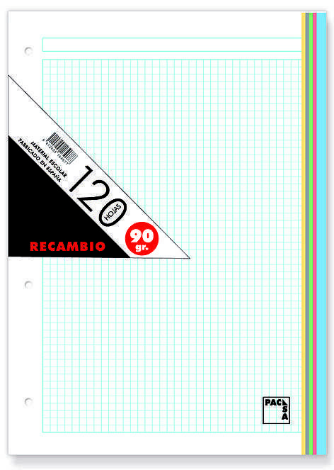 RECAMBIO A4 120H 90GR CUADRO 5MM COLORES SURTIDOS