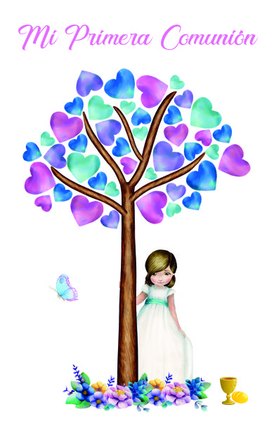 ROLLO 250 ETIQUETAS ADHESIVAS COMUNION NI?A ARBOL