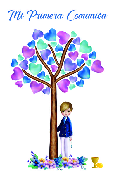 ROLLO 250 ETIQUETAS ADHESIVAS COMUNION NI?O ARBOL