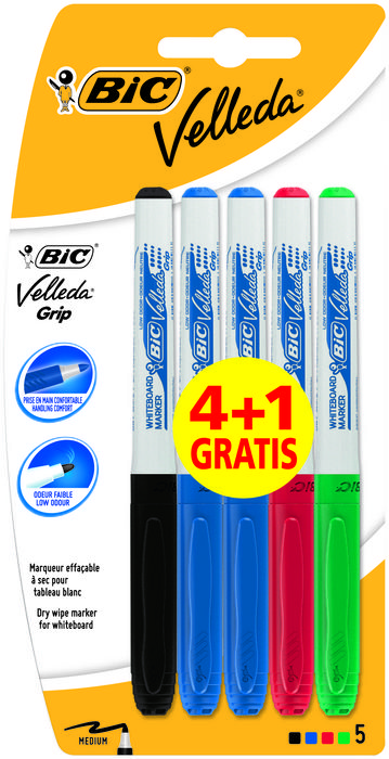 ROTULADOR BIC VELLEDA GRIP BLISTER 4+1 UDS 875700