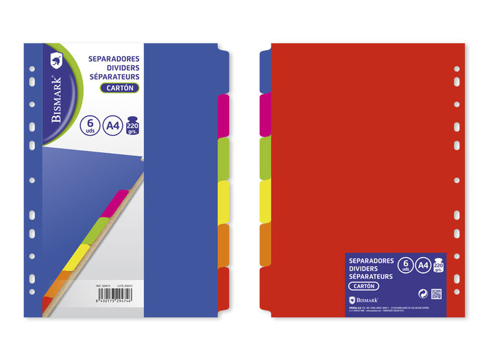 SEPARADORES CARTON NEON A-4 6 DEPARTAMENTOS