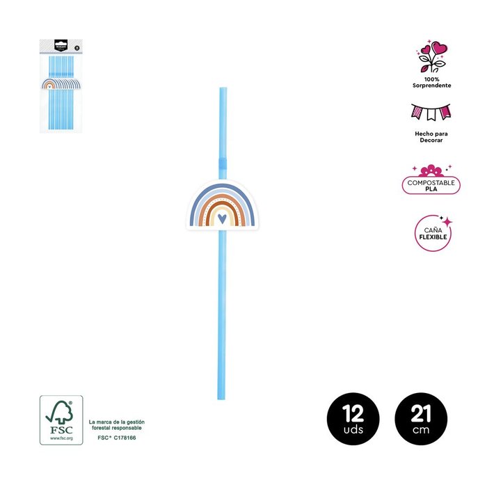 SET 12 CA?AS FLEXIBLES ADORNOS 21CM AZUL PASTEL FSCMIX 70%