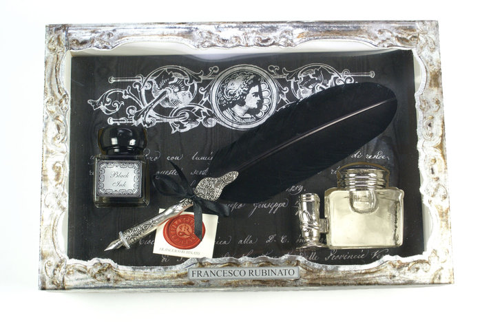 SET PLUMA NEGRA TINTERO CON SOPORTE Y TINTA 25 ML