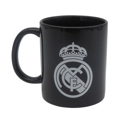 TAZA CERAMICA NEGRA CON ESCUDO BLANCO EN CAJA REAL MADRID